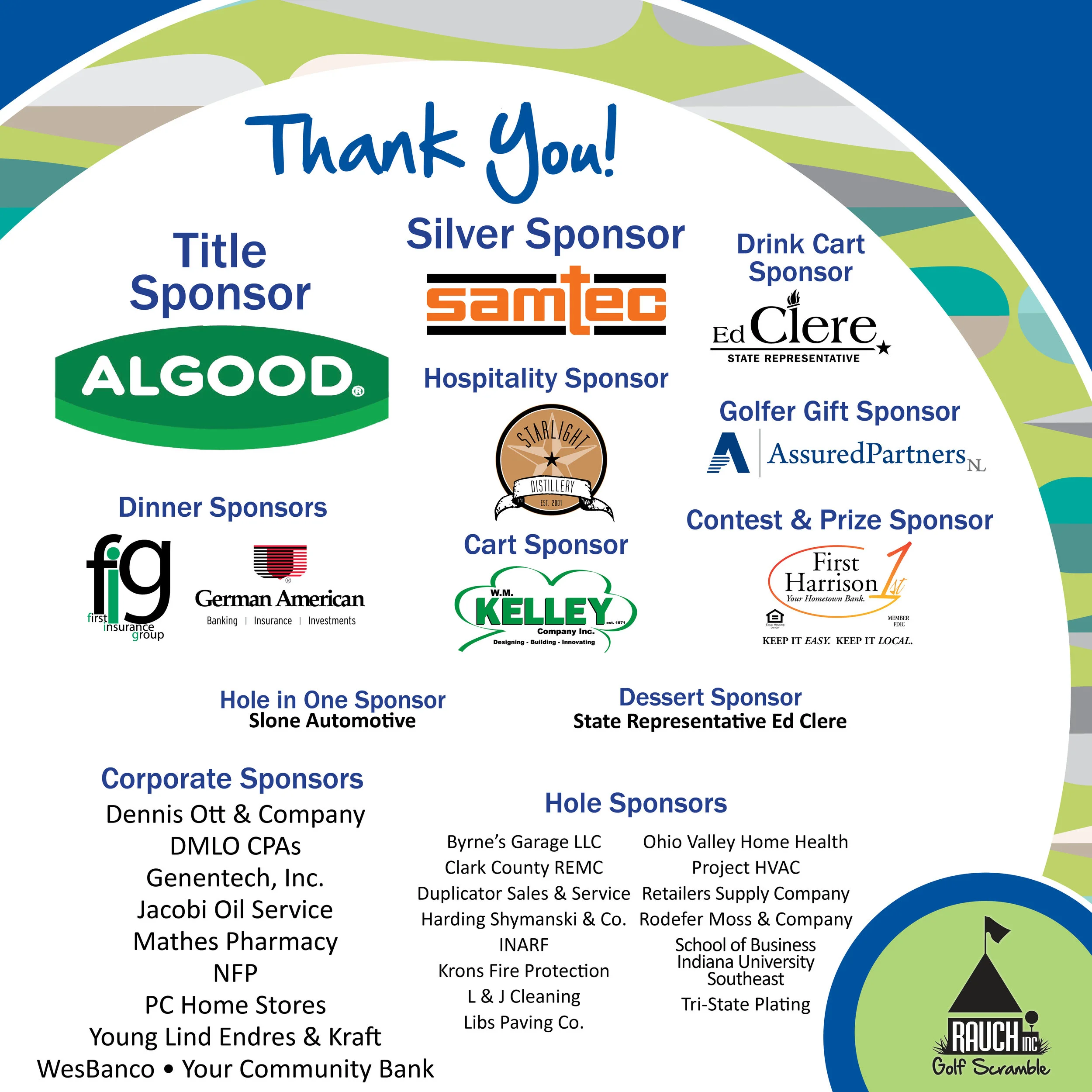 The 2016 Rauch Golf Scramble presented by Title Sponsor Algood Food Company took place September 12, 2016, at Fuzzy Zoeller's Champions Pointe Golf Club.Thank you to everyone who made this event a sell-out success! The event had a record net profit of $19,750 after expenses, a 31.5% increase over last year.